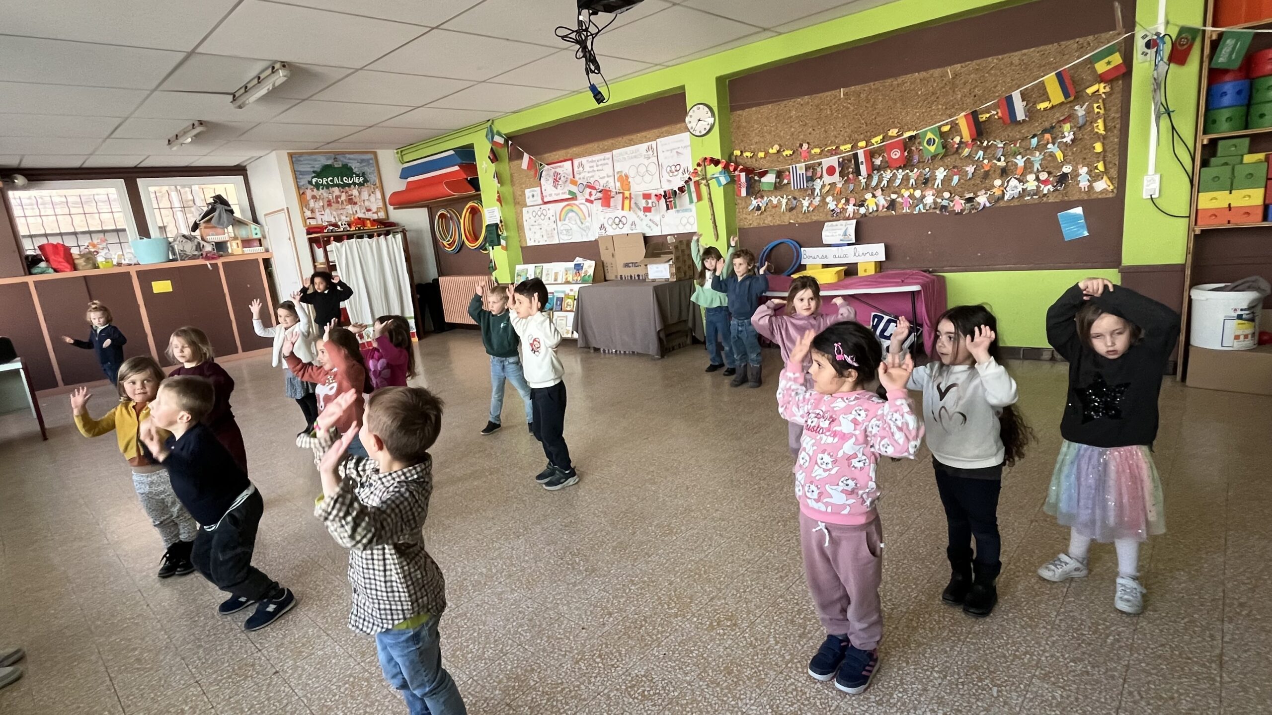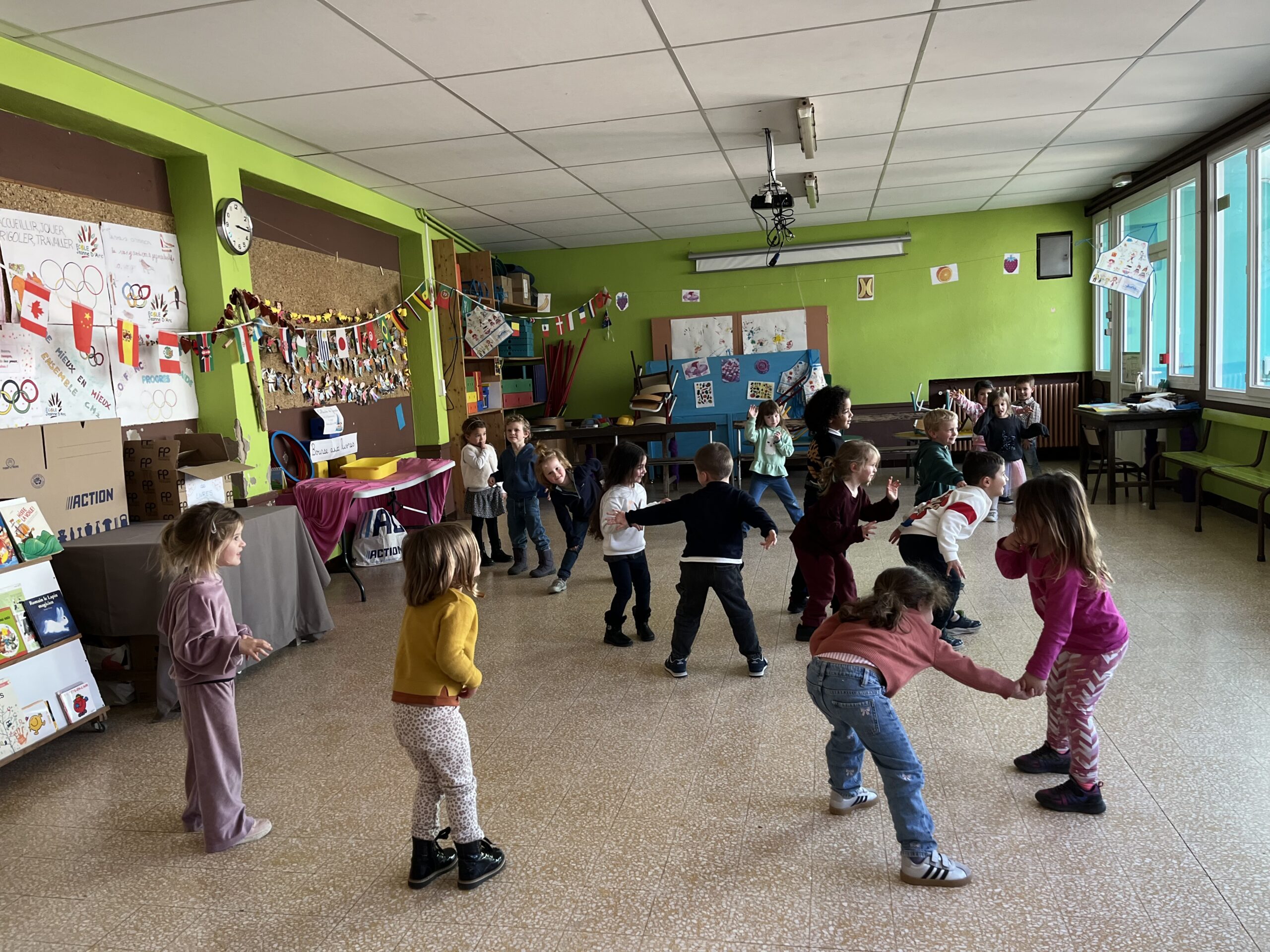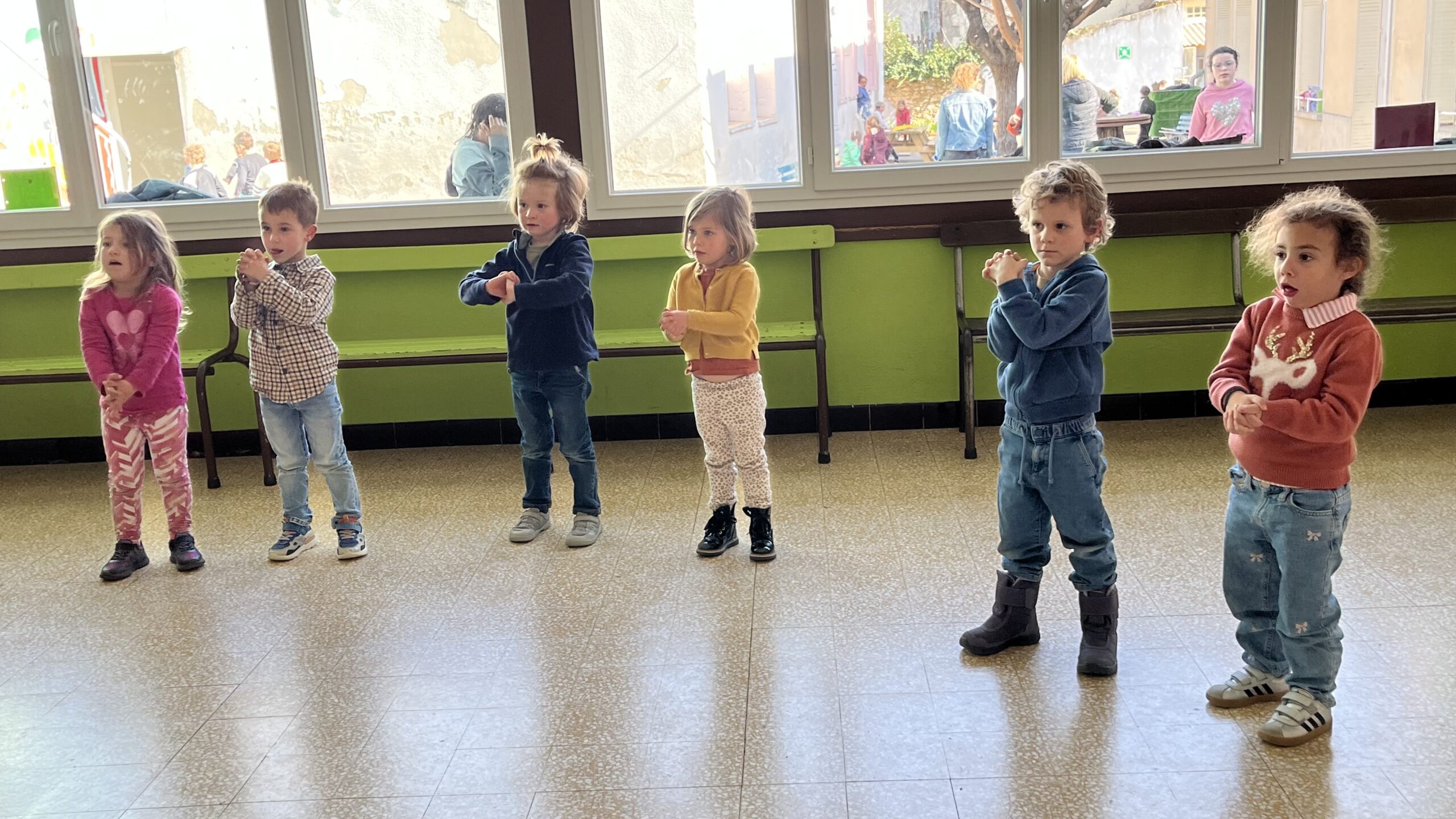 Sabrina nous a appris une petite danse. On se décalait vers la droite, puis vers la gauche. Ensuite on faisait semblant de lever un poids vers le haut, vers le bas. Après on faisait l’étoile, on écartait les bras et les jambes. Et à la fin on s’est mis accroupi.