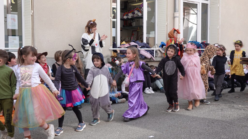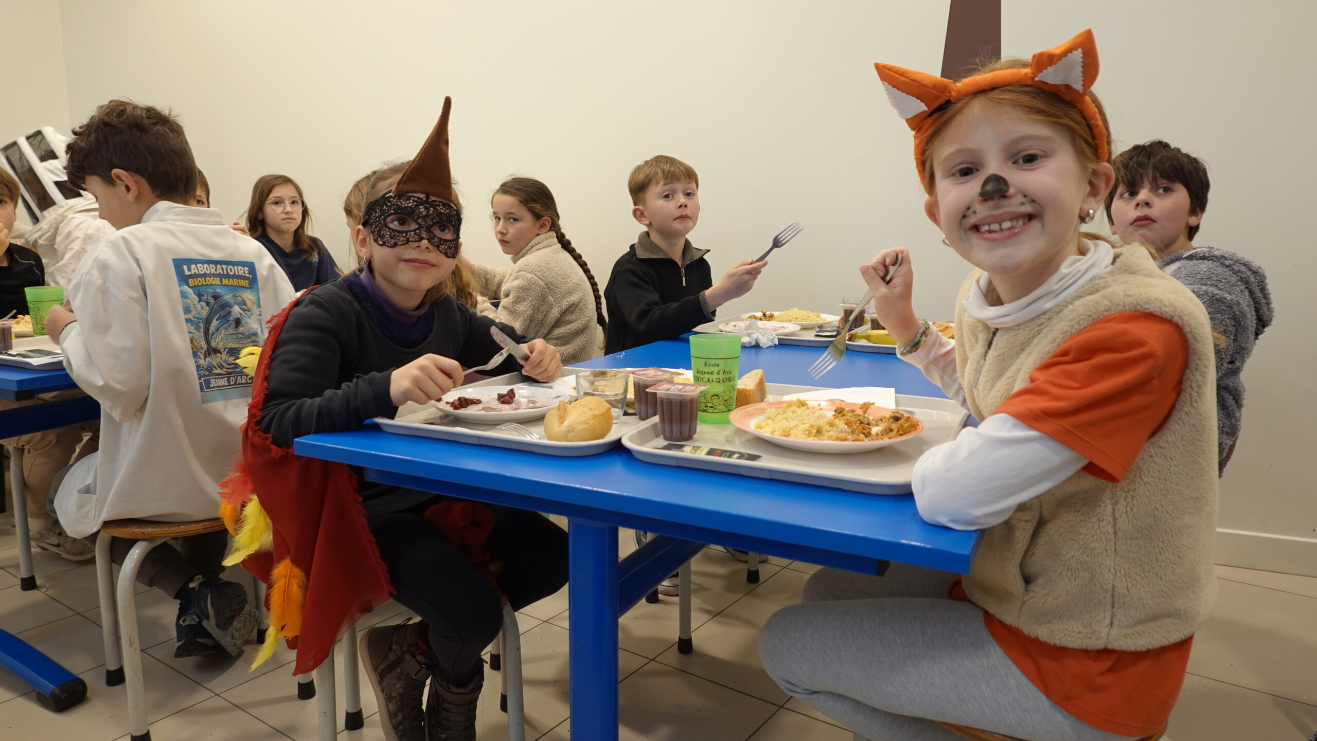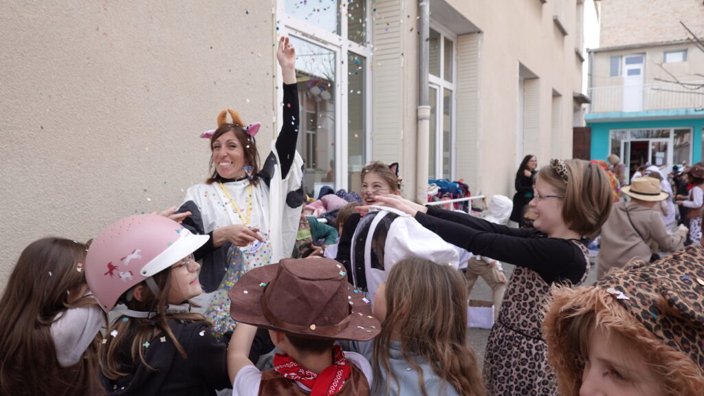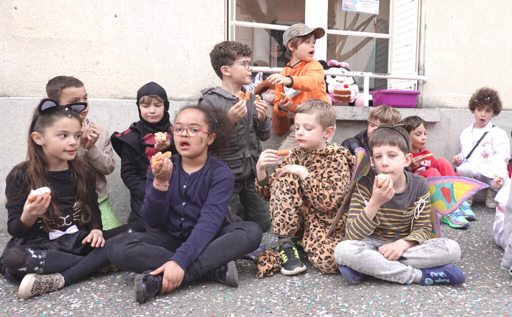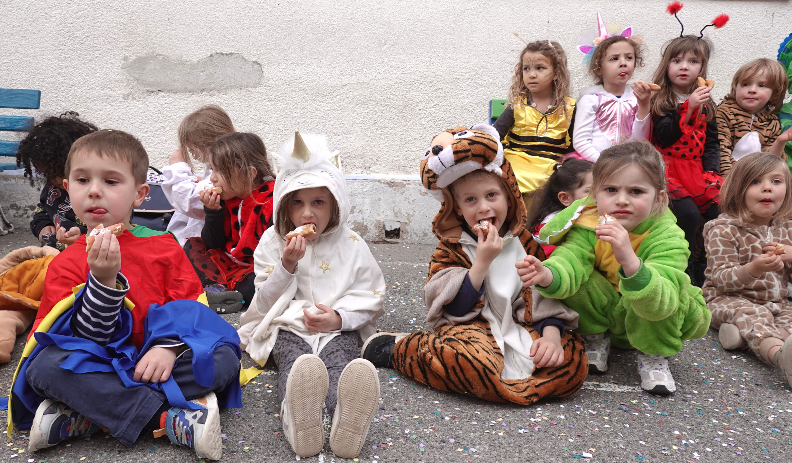 Après les confettis, nous avons mangé un goûter. Nous remercions beaucoup l’APEL pour les bugnes et les mandarines et Marie-Laure et Lucas Lefèvre du Carrefour Express pour les fraises.