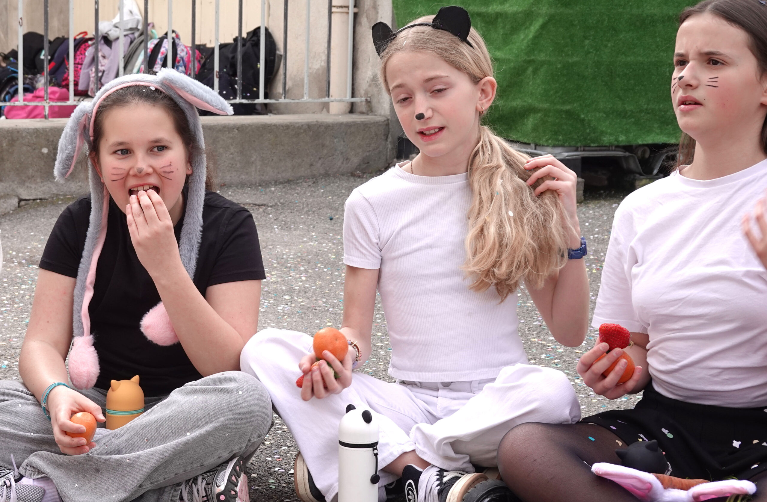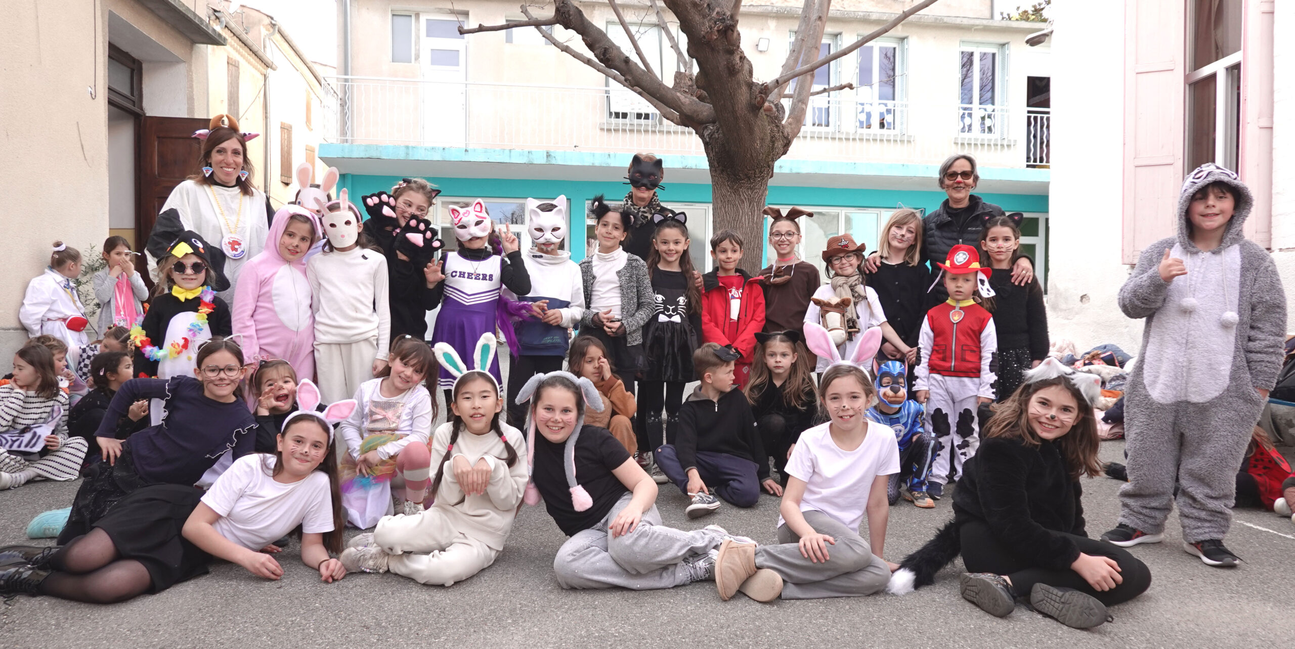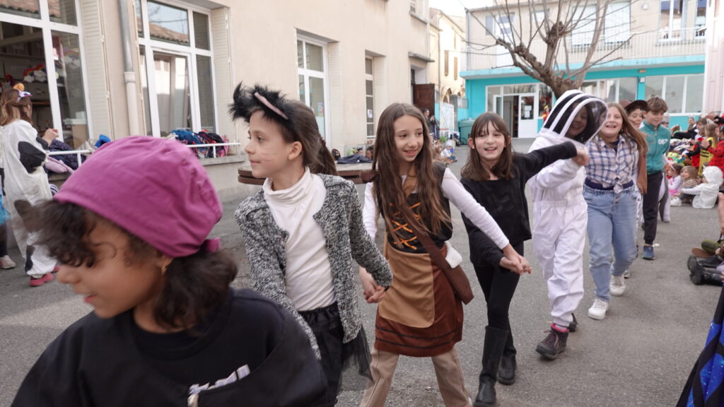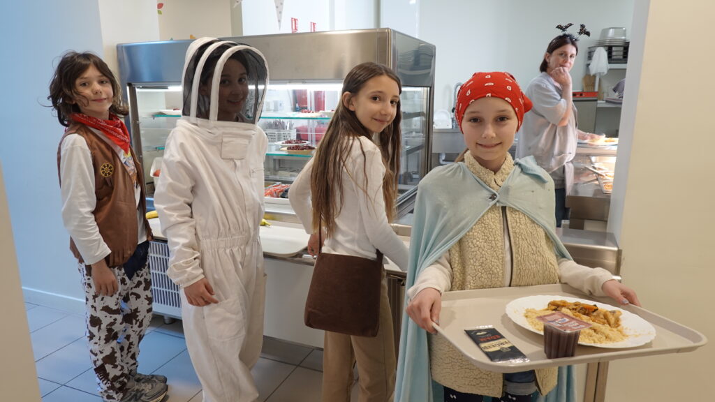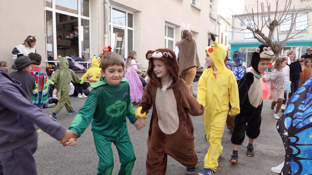 Après les confettis, nous avons mangé un goûter. Nous remercions beaucoup l’APEL pour les bugnes et les mandarines et Marie-Laure et Lucas Lefèvre du Carrefour Express pour les fraises.