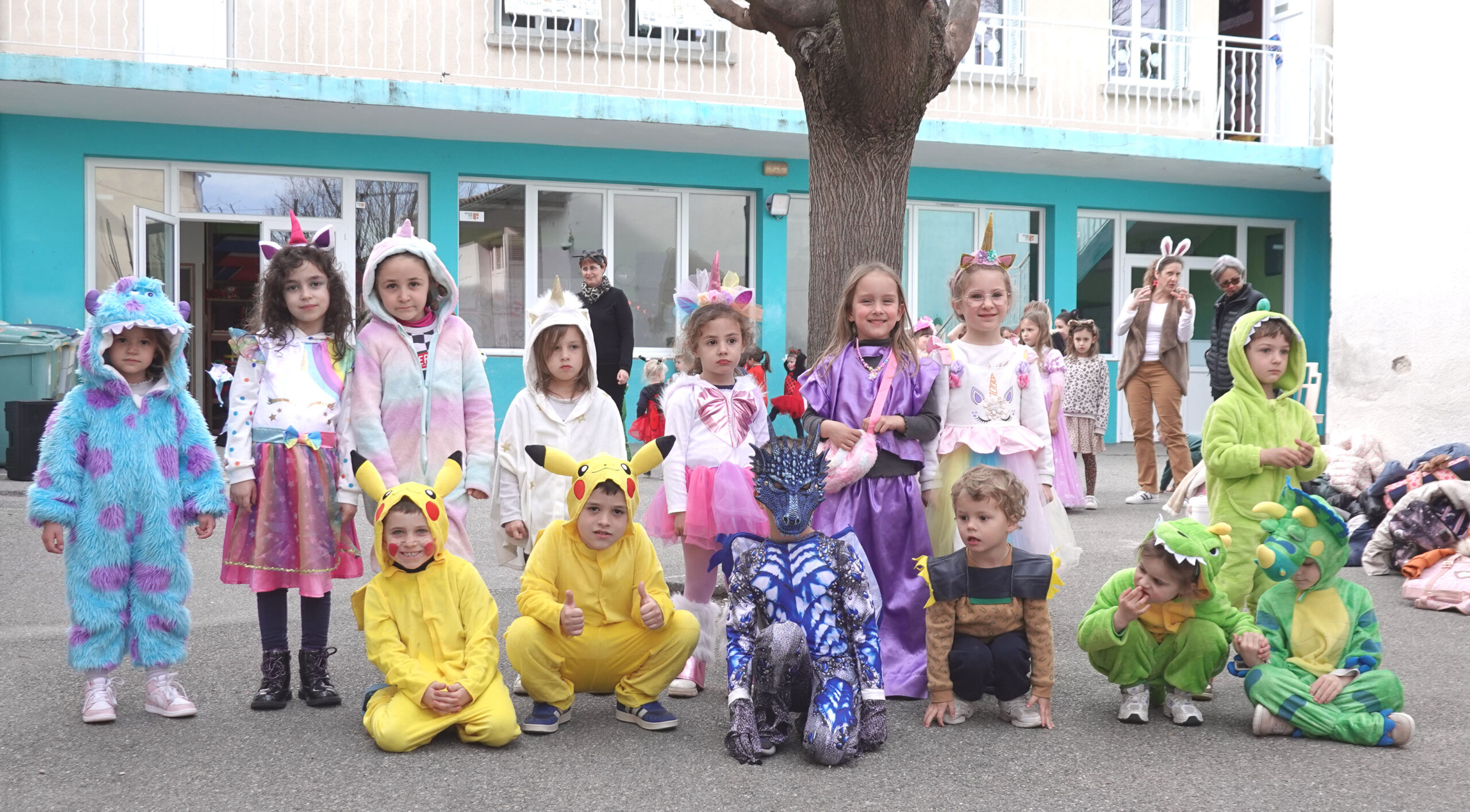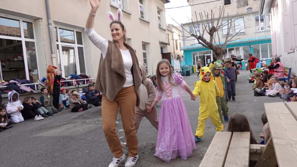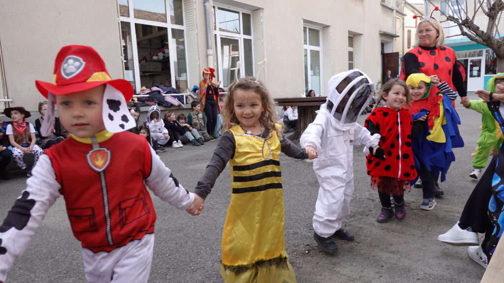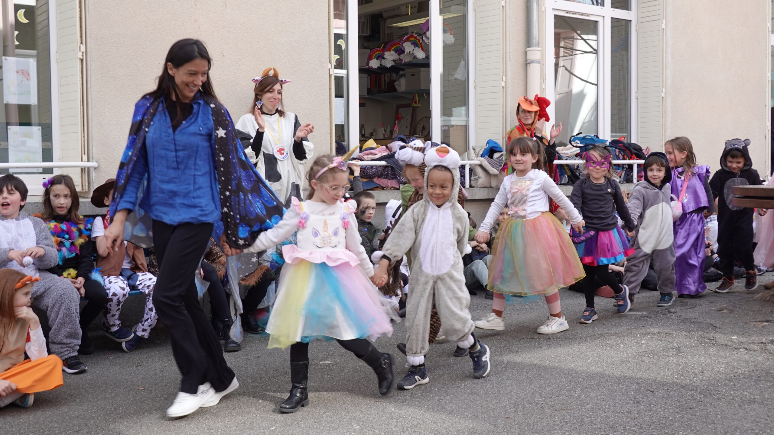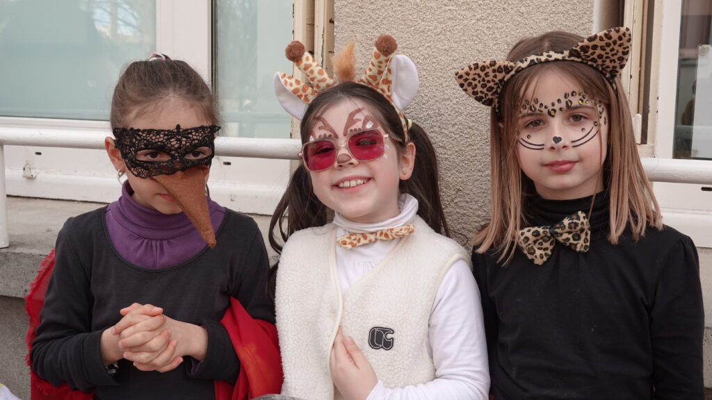 Après les confettis, nous avons mangé un goûter. Nous remercions beaucoup l’APEL pour les bugnes et les mandarines et Marie-Laure et Lucas Lefèvre du Carrefour Express pour les fraises.