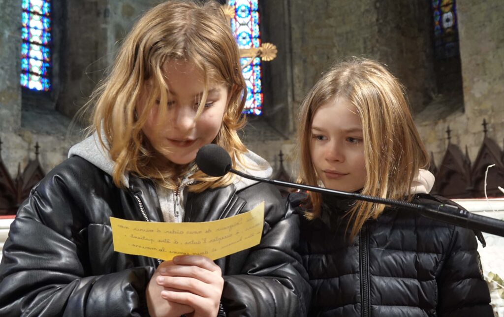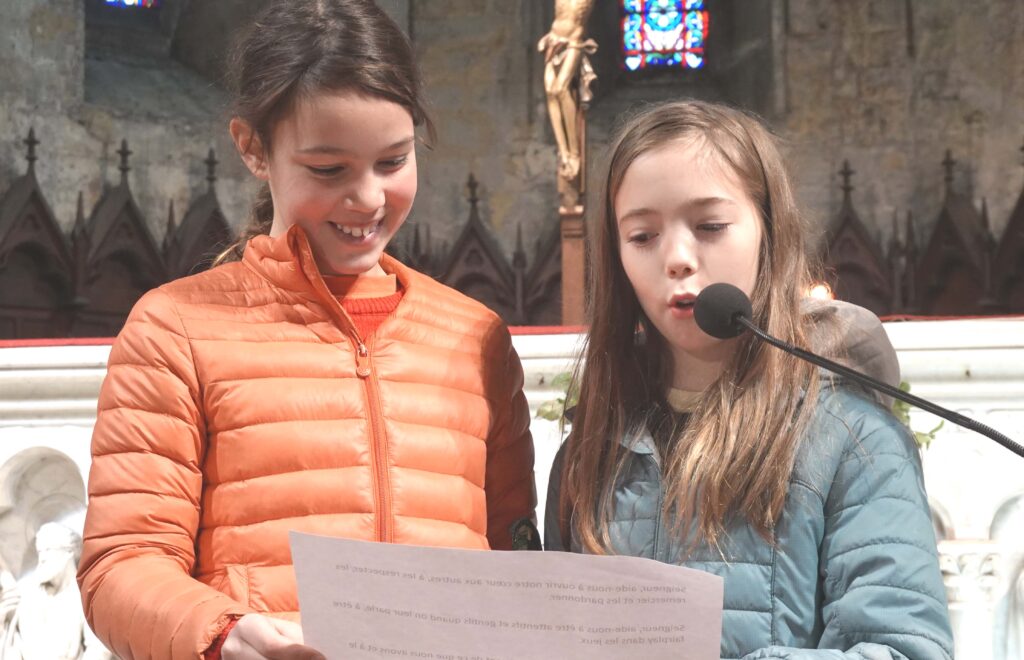 Des représentants des classes CE1, CE2, CM1 et CM2 ont lu les intentions de prières qui correspondaient aux semaines de la couronne.