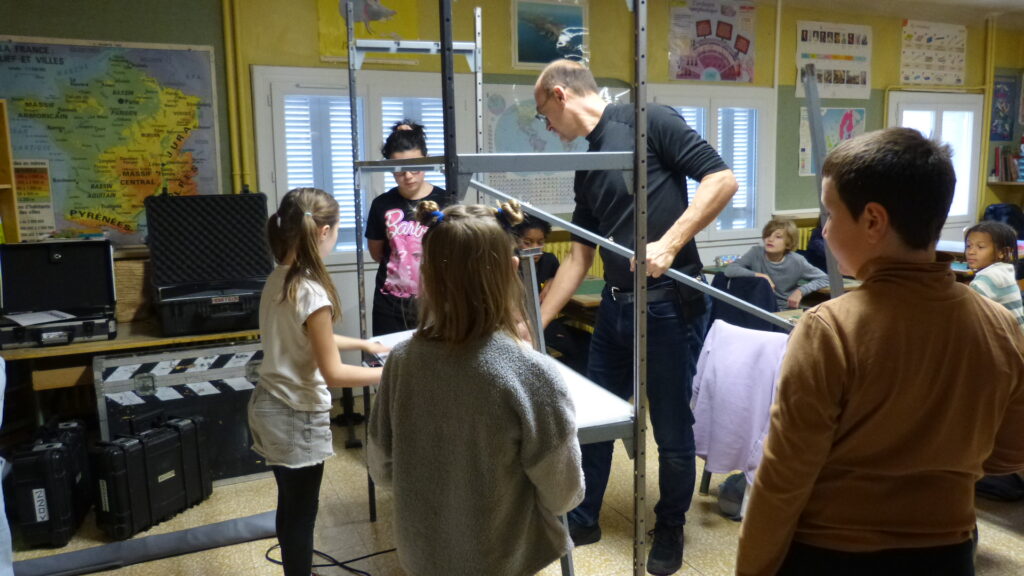D’abord, nous avons fait de nombreux allers-retours pour amener tout le matériel en classe.