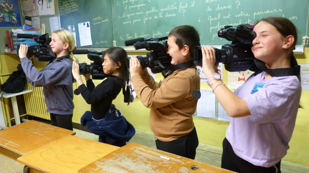 De retour en classe, nous avons appris à prendre et poser la caméra sur l’épaule.