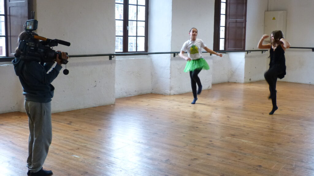 L’après-midi, nous sommes allés retrouver Julia Barbier, professeure de danse contemporaine. Nous nous sommes rendus dans sa salle de danse et nous avons installé le plateau de tournage pour réaliser le reportage. Nous avons mis en application notre entrainement du matin.