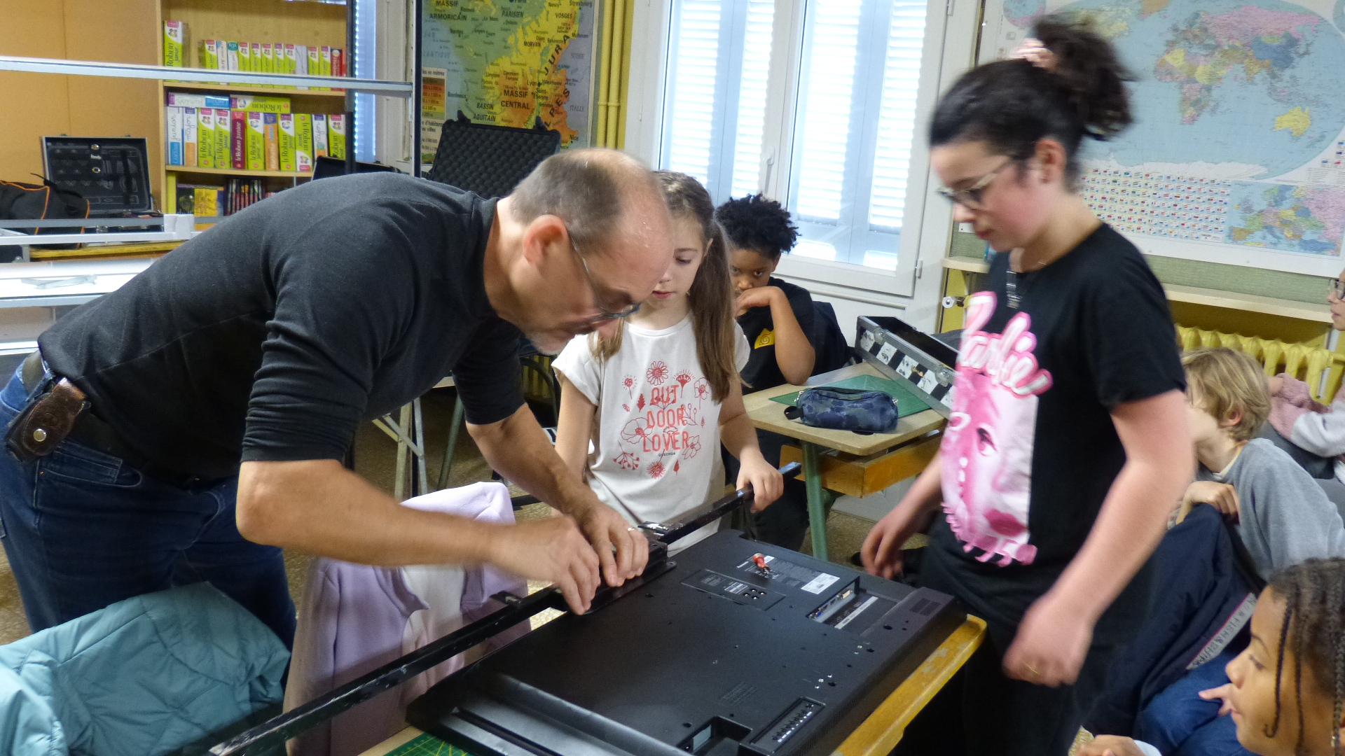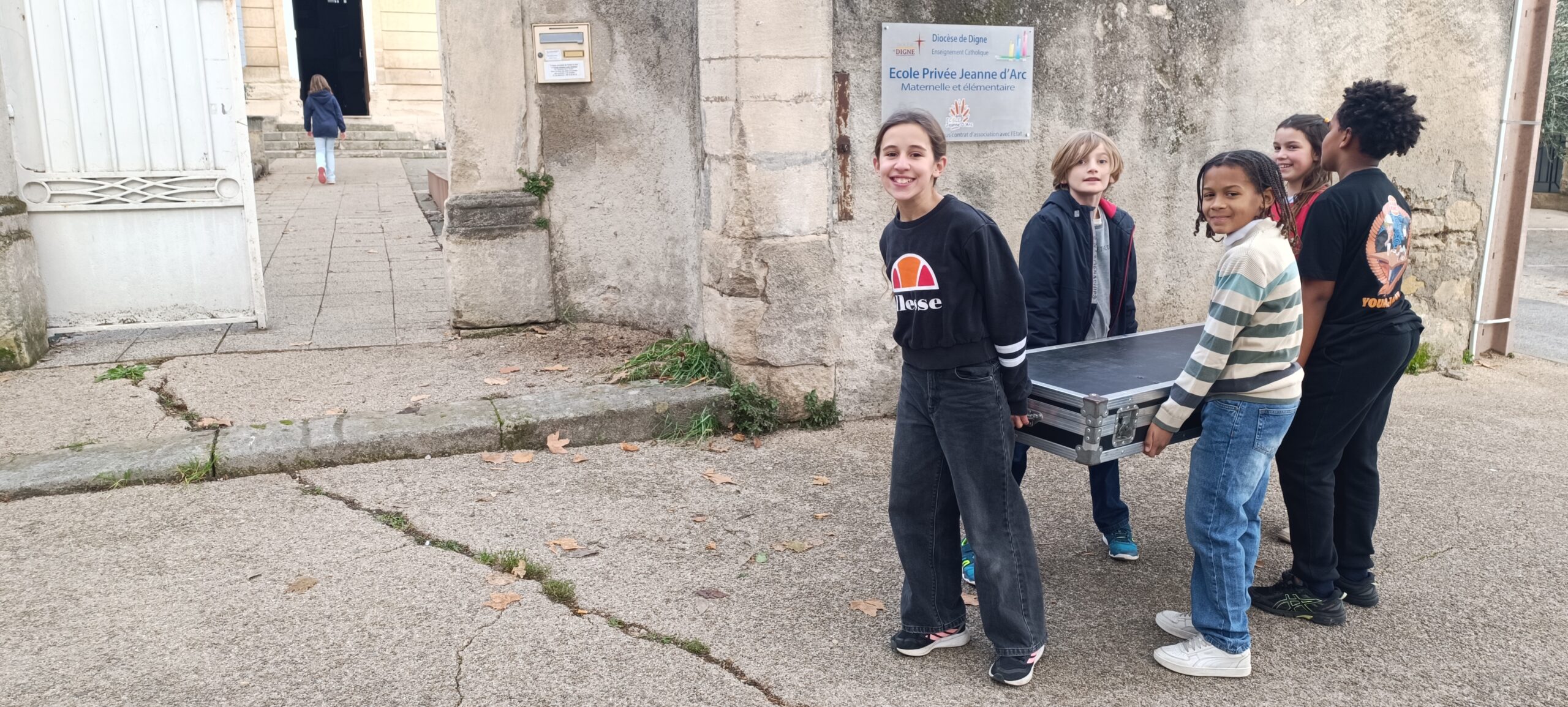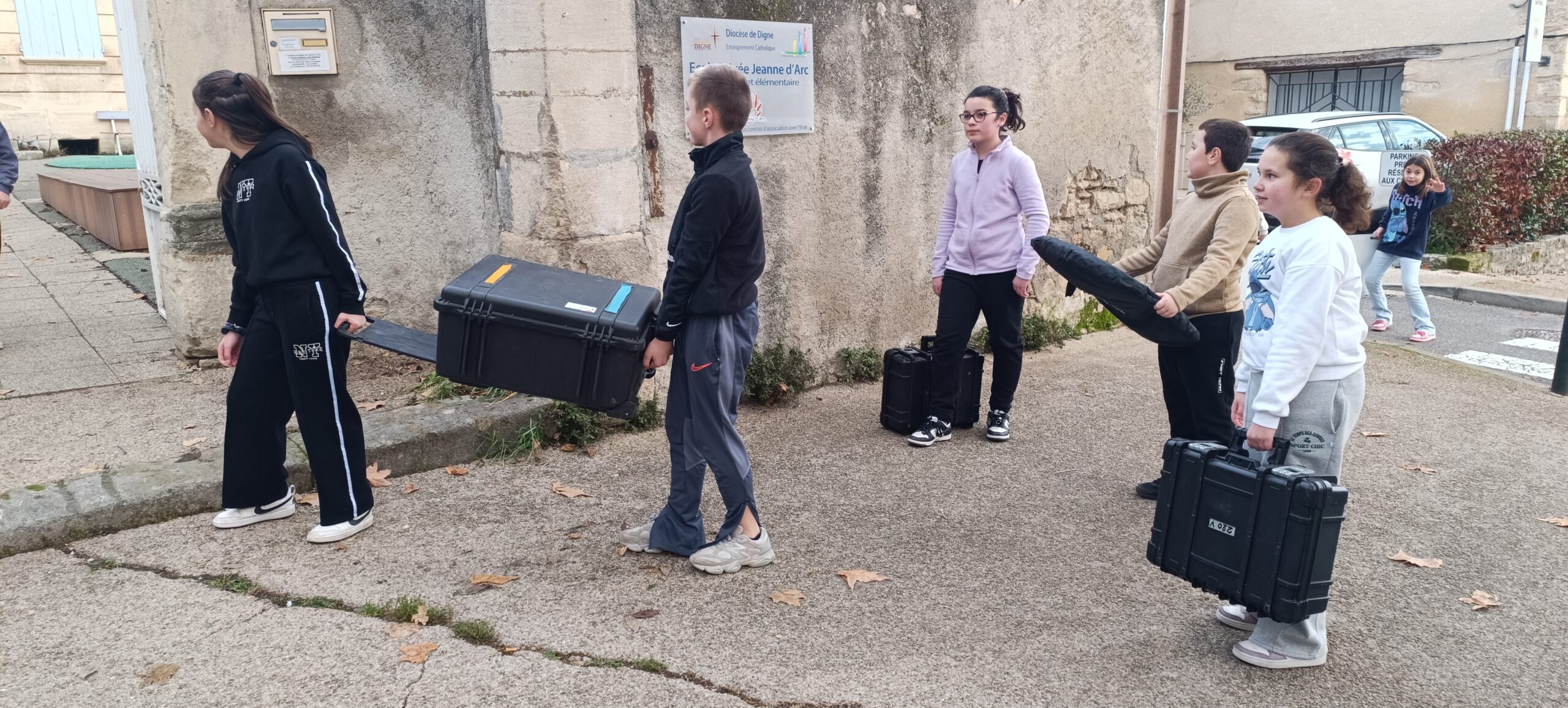 D’abord, nous avons fait de nombreux allers-retours pour amener tout le matériel en classe.
